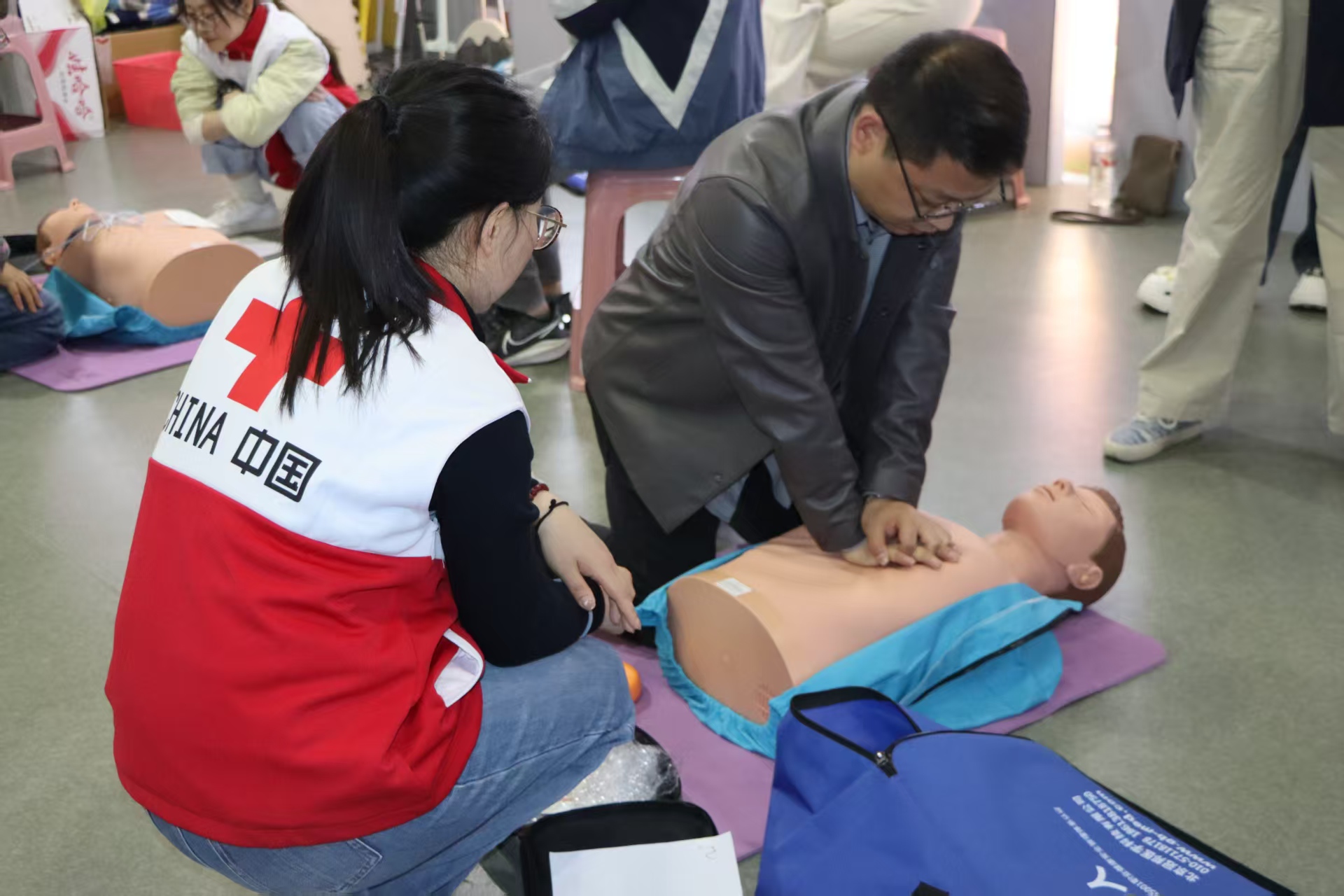 实操环节中,教师分组借助模拟人开展训练,校医院师资与校红十字会志愿者教辅全程指导,逐一纠正操作细节。参训教师认真练习,切实掌握急救技能。此次培训使教职工熟练掌握心肺复苏与自动体外除颤仪使用方法,强化了自救互救意识,为校园应急救护体系建设注入力量,为全校师生生命安全提供了坚实保障。